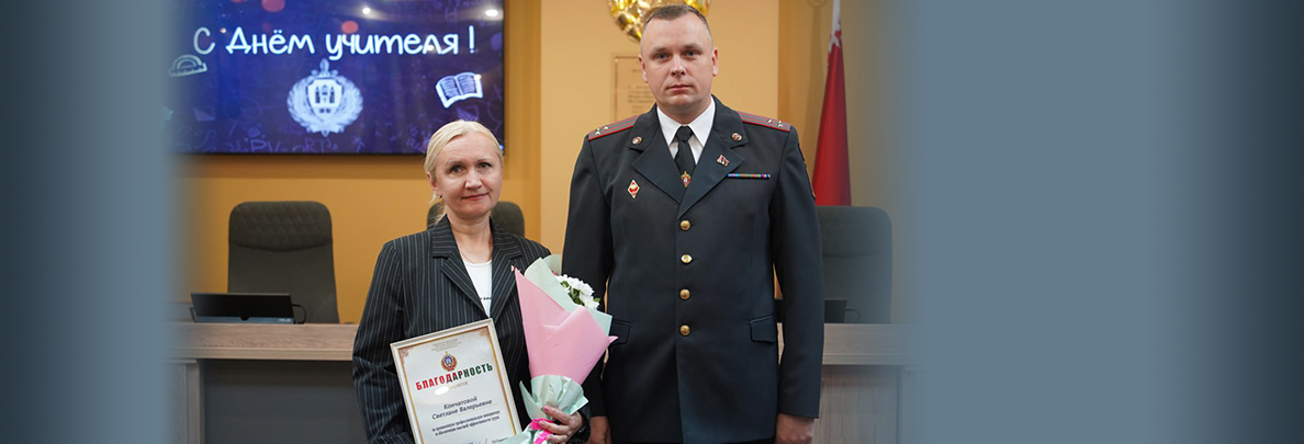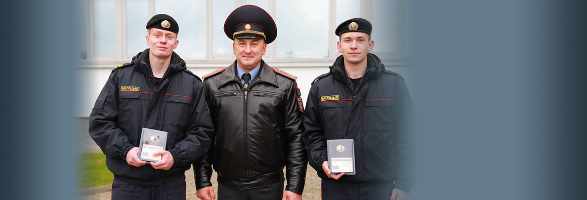 Начальник Могилевского института МВД полковник милиции Роман Романчук поздравил обладателей заветного черного берета, курсантов факультета милиции Владислава Морозова и Егора Азаронка